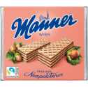 Oplatky Manner Neapolitaner se skládají z pěti vrstev jemných vaflí plněných čtyřmi vrstvami nejjemnější krémové oříškové náplně.