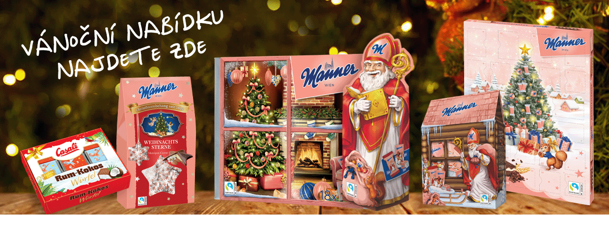 Pro milovníky čokolády jsou v nabídce rovněž jemné vafle Manner plněné čokoládovým krémem.