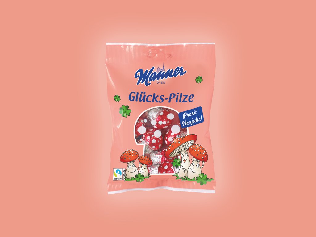 Manner Hřibečky jsou vyrobeny z čokolády Manner Vás provází do nového roku již mnoho let.